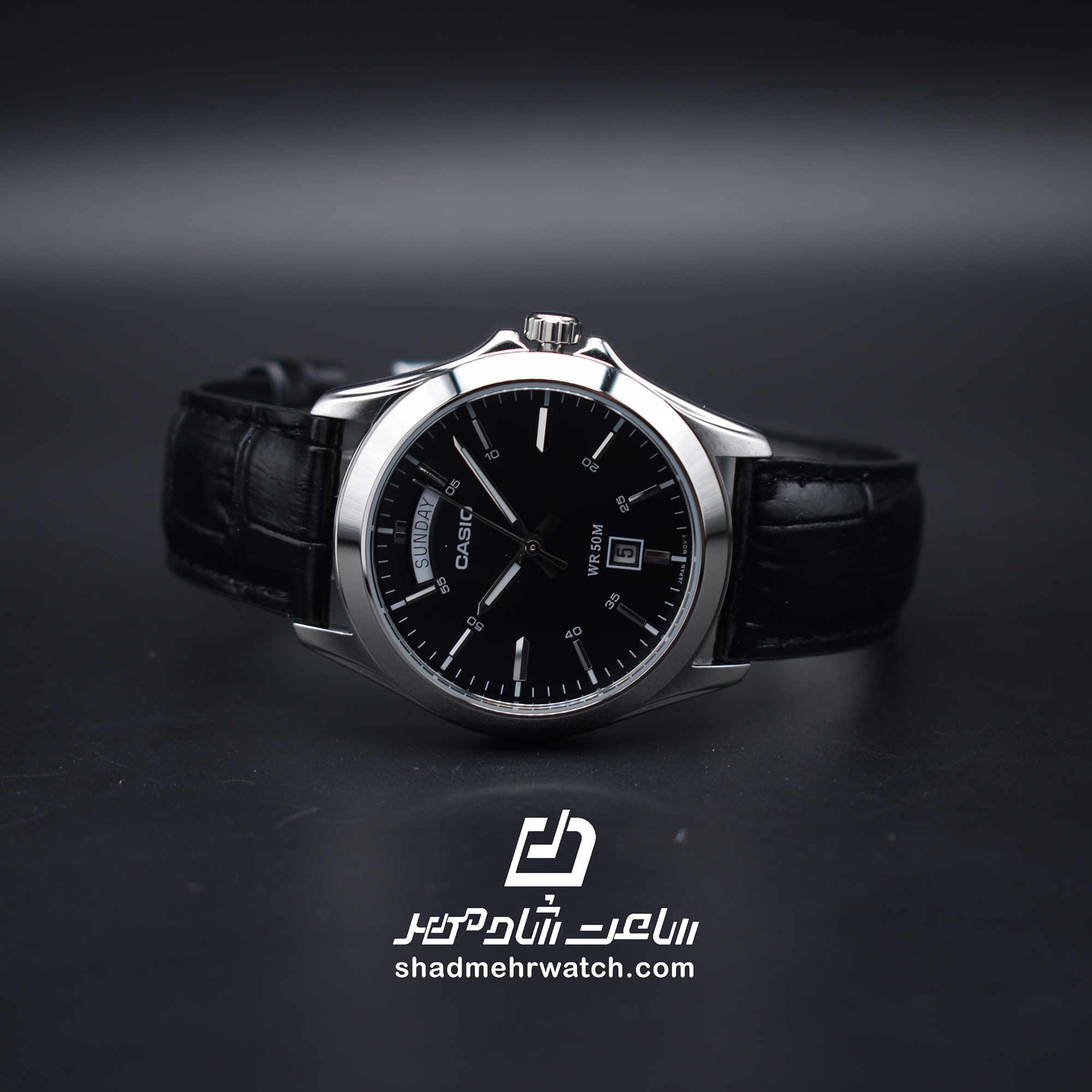 این مدل از سری کلاسیک کاسیو، ترکیبی از طراحی مینیمال و اصالت را به نمایش گذاشته است. بند چرمی مشکی و صفحه تیره، ظاهر رسمی و جدی به ساعت داده است. نمایش تاریخ و روز هفته از امکانات کاربردی آن است و شیشه معدنی مقاوم نیز از صفحه در برابر خط و خش محافظت میکند.